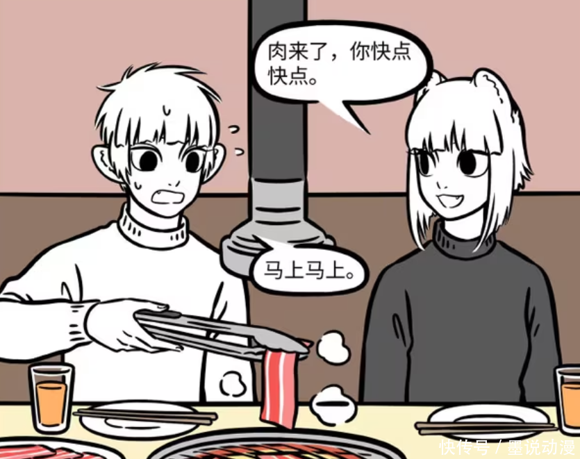很快肉就端上来,九月启动套路十一月,让他启动夹肉去烤。十一月连念念考的时辰都莫得,很当然就提起烤肉夹,也夹起来好多肉放在烤肉炉上烤了起来。可能是恒久吃泡面,导致烤肉手法有点不熟练。