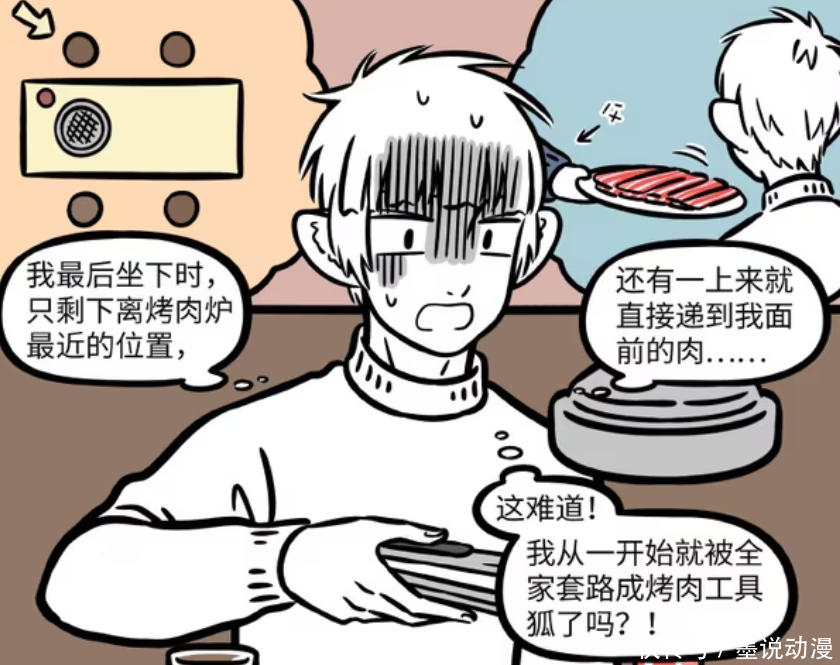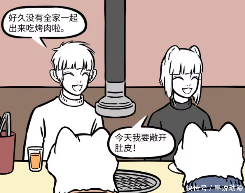 《非东说念主哉》漫画版中,九月和十一月贫穷回家一回,是以不仅吃到奶奶作念的菜,还亲身为爸妈作念了一桌肤浅面经管。后续九月一家去烤肉店吃烤肉,十一月酿成器具狐,为家东说念主烤肉。十一月蓝本以为,我方不错吃到大块烤肉,没猜测九月抢先吃。