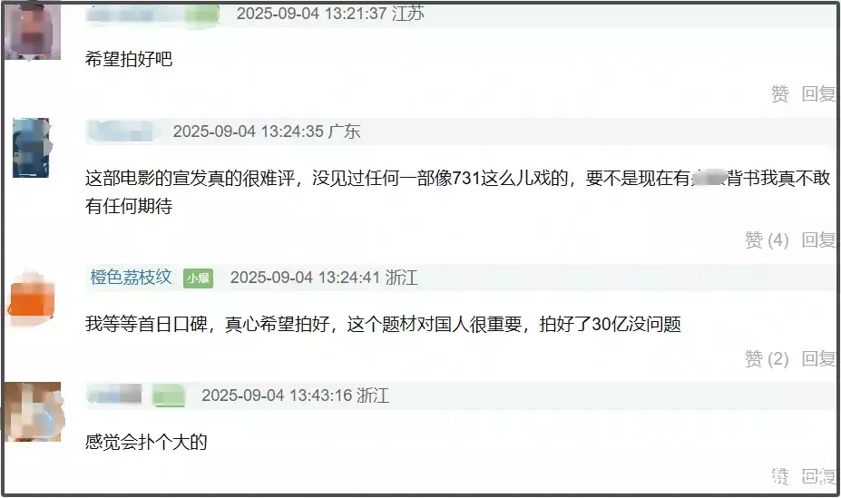 一直以来,外界赐与《731》高度温顺,即是因为电影自身题材特等,正如网友所说,岂论我方去不去看,都但愿《731》不如若一部烂片,独一不是烂片,就但愿片子票房能好。