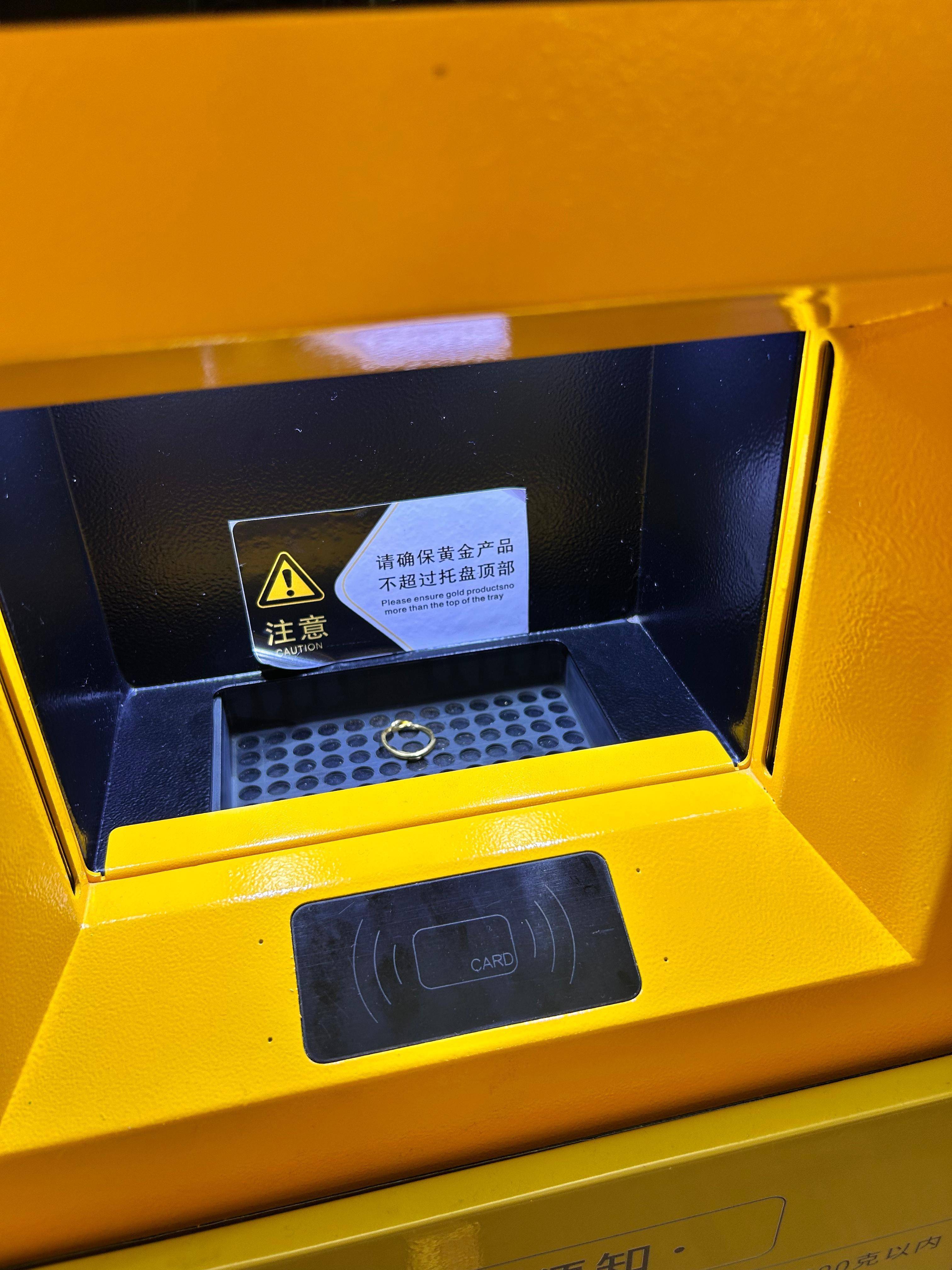 深圳深业上城南区市集位置就有这么一家“理智金店”。10月14日,记者实地看到,这台外不雅神似ATM的开荒醒研究标着“全程可视,安全透明”,屏幕上则炫夸着国际市场及时金价。机器提供含金量在50%以上,分量3克以上、1000克以内的黄金回收工作。但同期,其自助售卖末端也出售“小克重、轻量化”黄金居品。