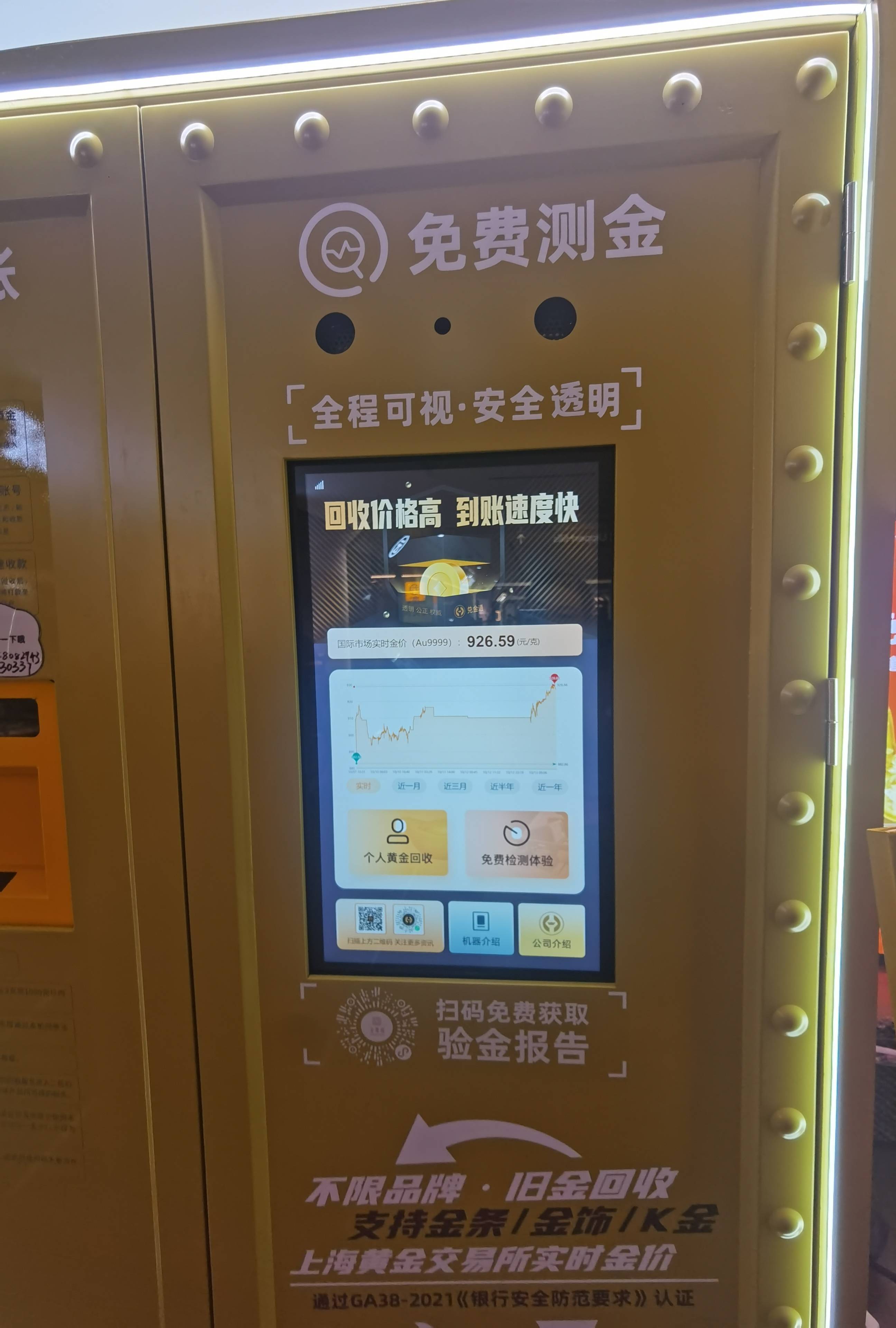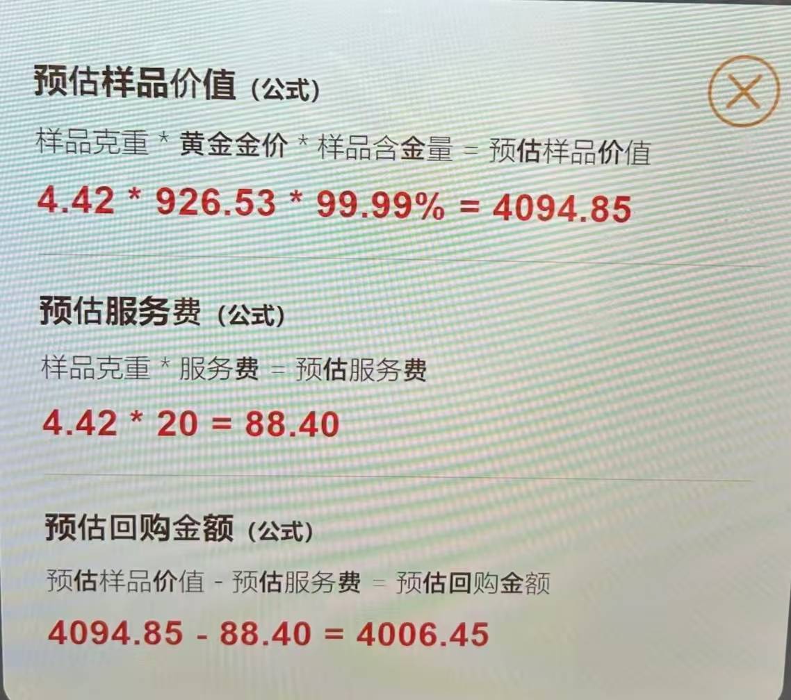 记者现场体验了黄金回收过程。按照操作指令,不错在1分钟内竣事自助下单。当场将黄金居品放入闸口,平放于托盘上,机器3分钟完成自动检测,并给出样品克重、含金量等数据,结合金价给出预估样品价值,以及扣除工作费的预估回购金额等信息。阐述回收后,最快30分钟傍边,即可收到打款。据店家职责主谈主员先容,“理智金店”回收克重精确度不错达到0.01克,开荒对接上海黄金往来所及时金价,首肯通过GA38-2021认证,如期接管市场监管校准,并与多家银行达成勾通。